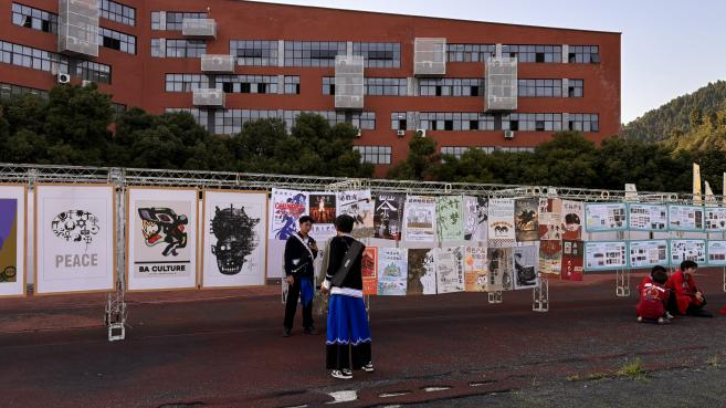 "巴蜀承韵 草地拾遗"文化展览通过巴文化创意主题展及书法作品临展,带领观众穿梭于传统与现代之间。其中巴文化创意展区汇集了全球50多个国家和地区的设计师作品,与我校文化产业管理专业的青年学生展开一场跨越时空的巴文化对话。