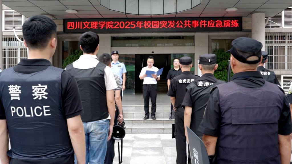 6月26日,学校2025年应急处突演练在莲湖校区举行。副校长陈光平,通川区公安局政保大队、莲花湖派出所民警参加演练并进行指导。