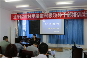 近日,应通川区委邀请,外国语学院教师、四川省高校基础外语实验教学示范中心主任汪成慧教授为通川区2014年度副科级领导干部培训班作公务礼仪讲座。40余人聆听了报告。