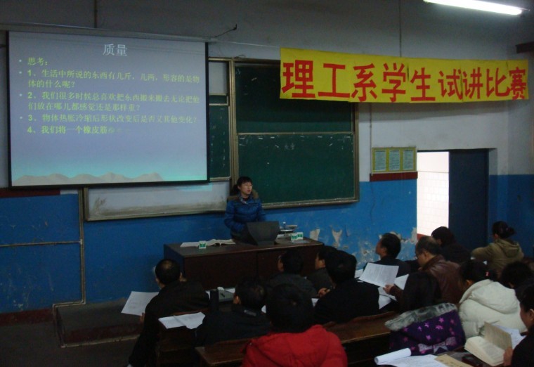 1月13日下午2:40,物理与工程技术系学生试讲比赛在南坝校区一教楼111教室举行。理工系党总支副书记杨成福、系副主任张志森、系党总支副书记兼学生第一党支部书记郝加波、系副主任兼实验室主任熊维德及部分教师出席并担任了本次比赛评委。理工系党总支副书记杨成福老师对参赛选手的师范技能和讲课技巧做了指导和说明。