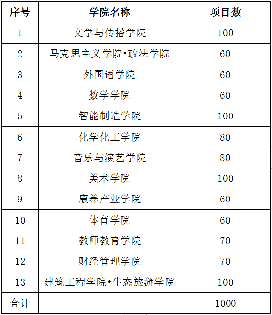 (六)依据二级学院人数按比例确定各学院最少参与项目数量要求如下: