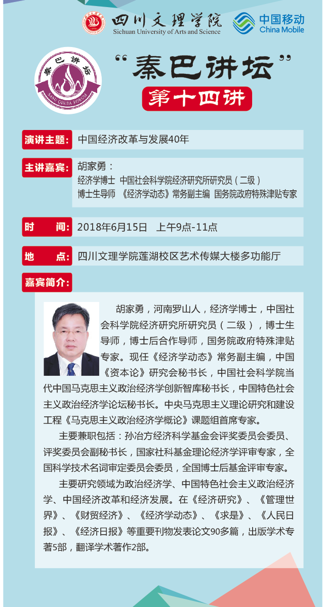 秦巴讲坛第十四讲预告:中国经济改革与发展40年