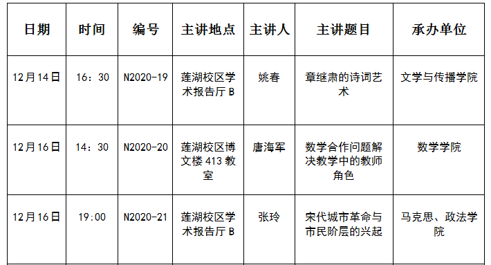 上一条:2020年度秋季第十六周学术讲座安排(2020.12.21-12.27)