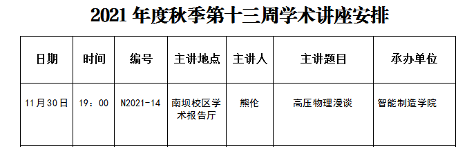 2021年度秋季第十三周学术讲座安排