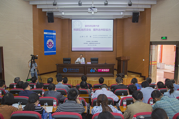 4月19日下午,达州市人大常委会党组书记、主任,达州市巴文化发掘与研究小组顾问、达州市诗词协会名誉主席胥健先生应邀作客我校“秦巴讲坛”,作“传承弘扬巴文化 ,提升达州软实力”专题学术报告。校长王成端主持报告会。