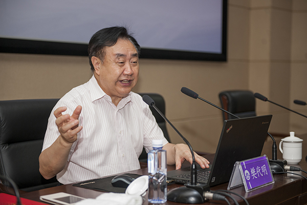党委书记王成端教授作主持总结,他指出樊代明院士的报告高屋建瓴,深入浅出,诙谐幽默,精彩纷呈,既是一场知识盛宴,也是一场头脑风暴,凝结了樊院士大量的工作及心血,充分展现了院士风采、学者风度和军人气质。