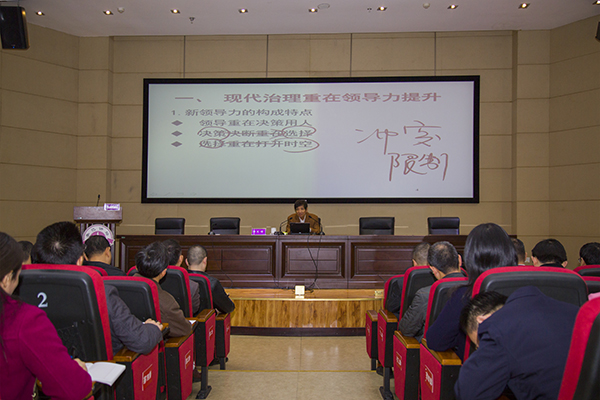 报告会上,刘峰教授结合学习贯彻党的十八届六中全会精神和习近平总书记有关重要论述,提出了“新领导力=决策力(领)×影响力(导)”、“领导之导=引导+辅导+督导+教导”、“领导知识=常识+通识+胆识+器识”、“新领导力=硬权力(常量)×软权力(变量)”、“领导力=权力+能力+魅力+魄力”等六个公式,从新领导力的构成特点、新领导力的三德修炼、提升执行力的三个路径和三大要素、“来去自如”和“方圆兼顾”的领导艺术等方面,深度阐释“现代治理与领导力提升”这一命题。