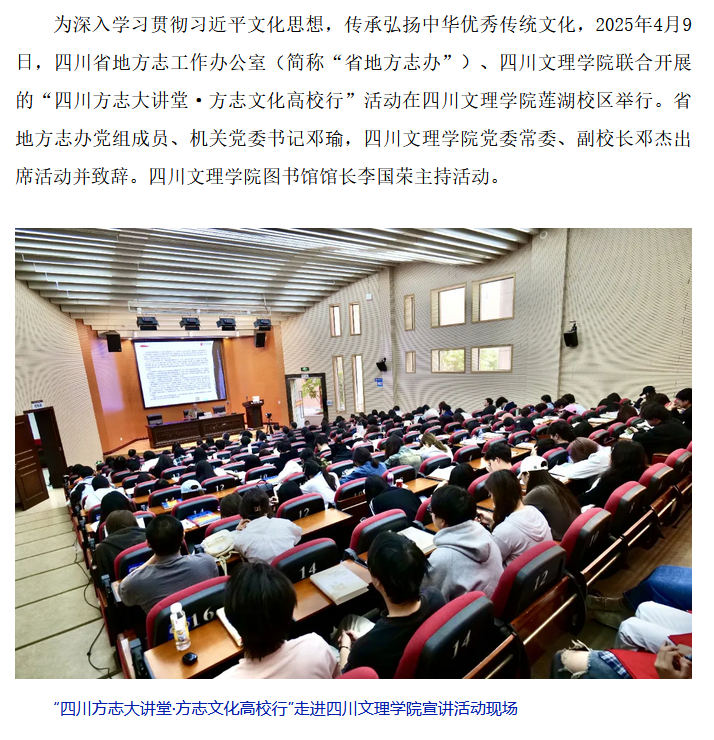 【方志四川】方志探隐秘 达州解传奇——“四川方志大讲堂・方志文化高校行”2025年第二场宣讲在四川文理学院举行