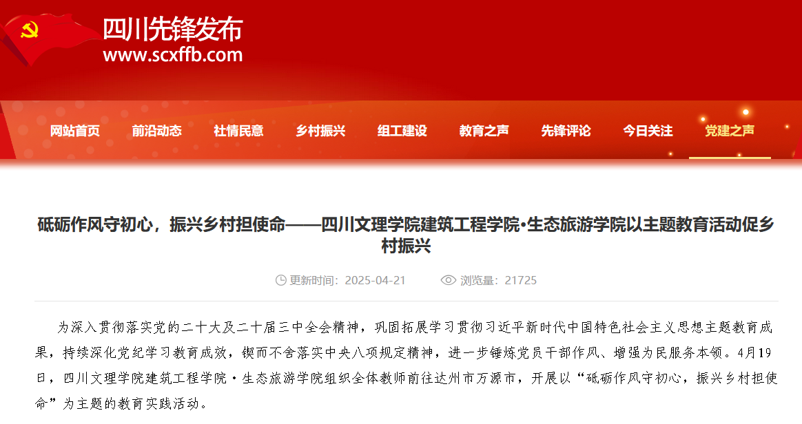 【四川先锋发布】砥砺作风守初心,振兴乡村担使命——四川文理学院建筑工程学院·生态旅游学院以主题教育活动促乡村振兴