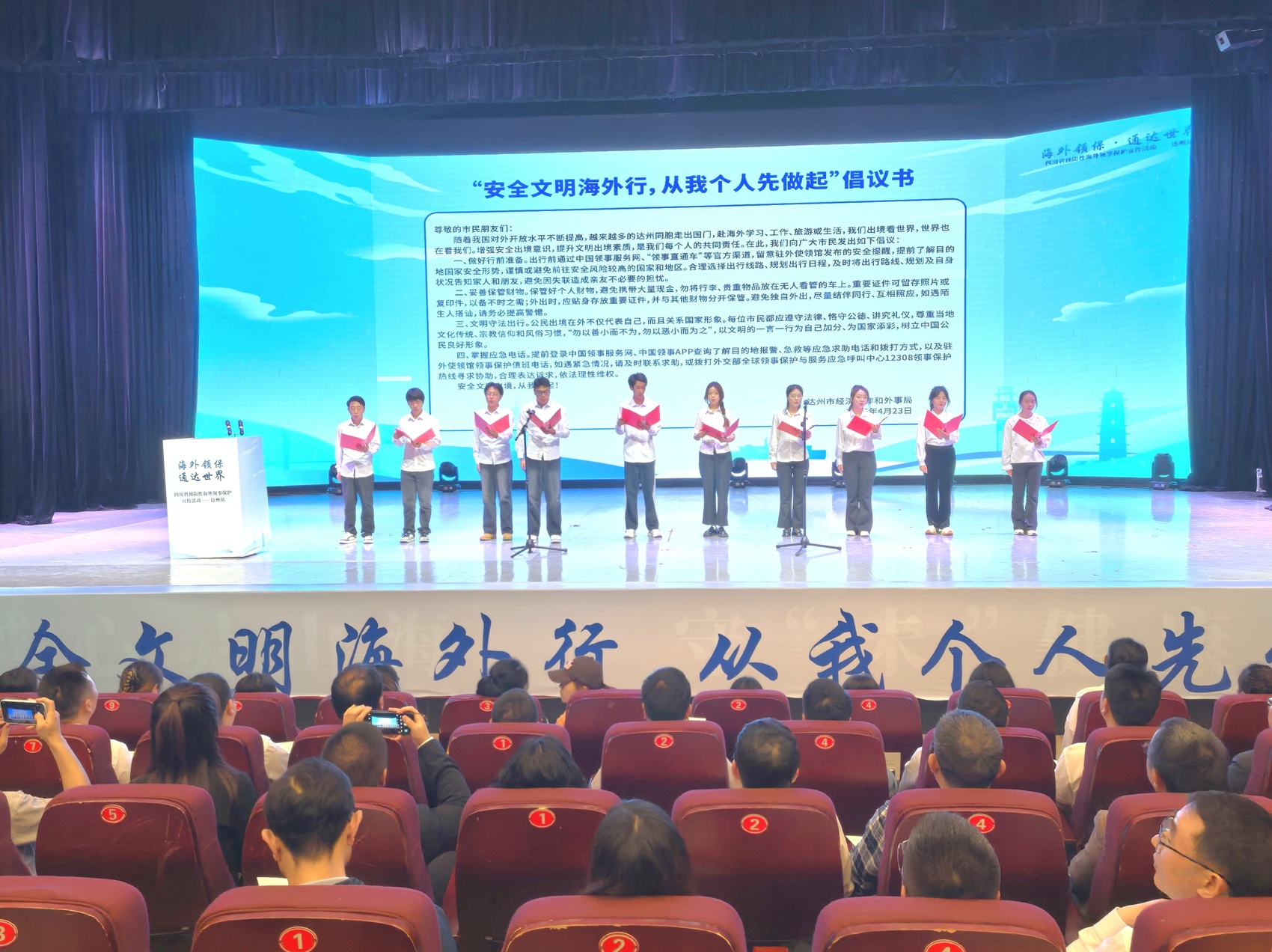 宣读《“安全文明海外行,从我个人先做起”倡议书》