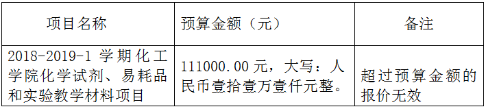 2018-2019-1学期化工学院化学试剂、易耗品和实验教学材料项目竞争性谈判公告