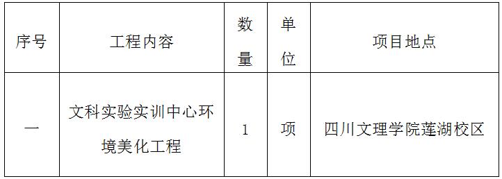 因学校发展需要,现对四川文理学院文科实验实训中心环境美化工程进行邀请招标,有关具体事项如下: