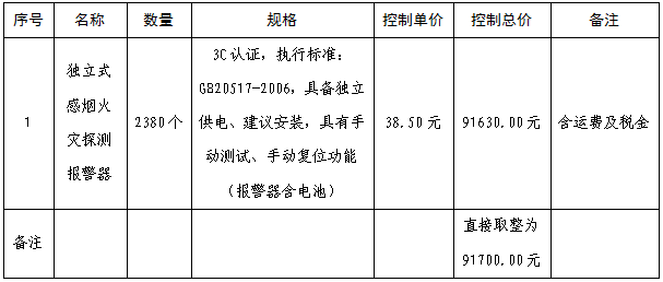 四川文理学院保卫处独立式感烟火灾探测报警器采购项目,编号:川文理交易中心〔2017016〕(X)号;预算价91700.00元(大写:玖万壹仟柒佰元整),超过预算的报价为无效报价。