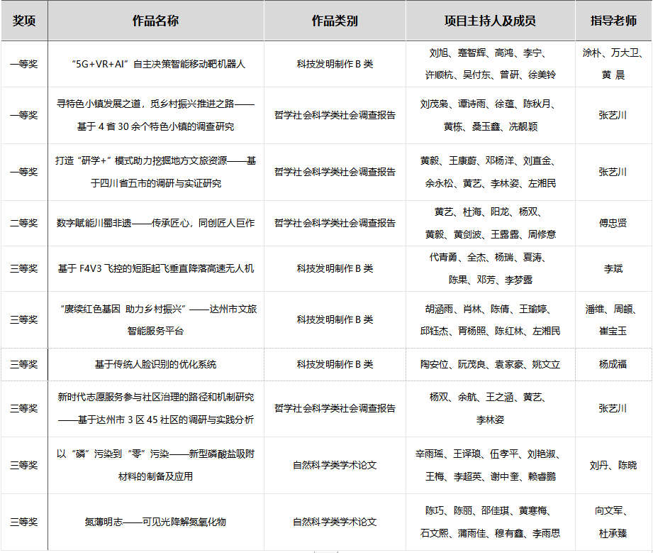 科创筑梦青春,挑战成就梦想。近日,第十七届“挑战杯”四川省大学生课外学术科技作品竞赛终审决赛在成都大学圆满闭幕,副校长徐晓宗参加闭幕式。经过激烈角逐,我校获一等奖3项,二等奖1项,三等奖6项,推荐的10个项目全部获奖。我校参加“挑战杯”省赛成绩再创历史新高。