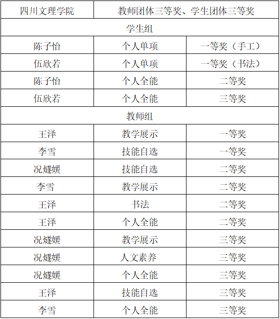 7月6日,四川省第五届高等学校美术教育类专业大学生基本功活动和第三届高等学校美术教育类专业教师基本功活动在乐山师范学院圆满落幕。我校美术学院师生6人经过努力拼搏,共取得4项个人一等奖、5项二等奖和8项三等奖的优异成绩。