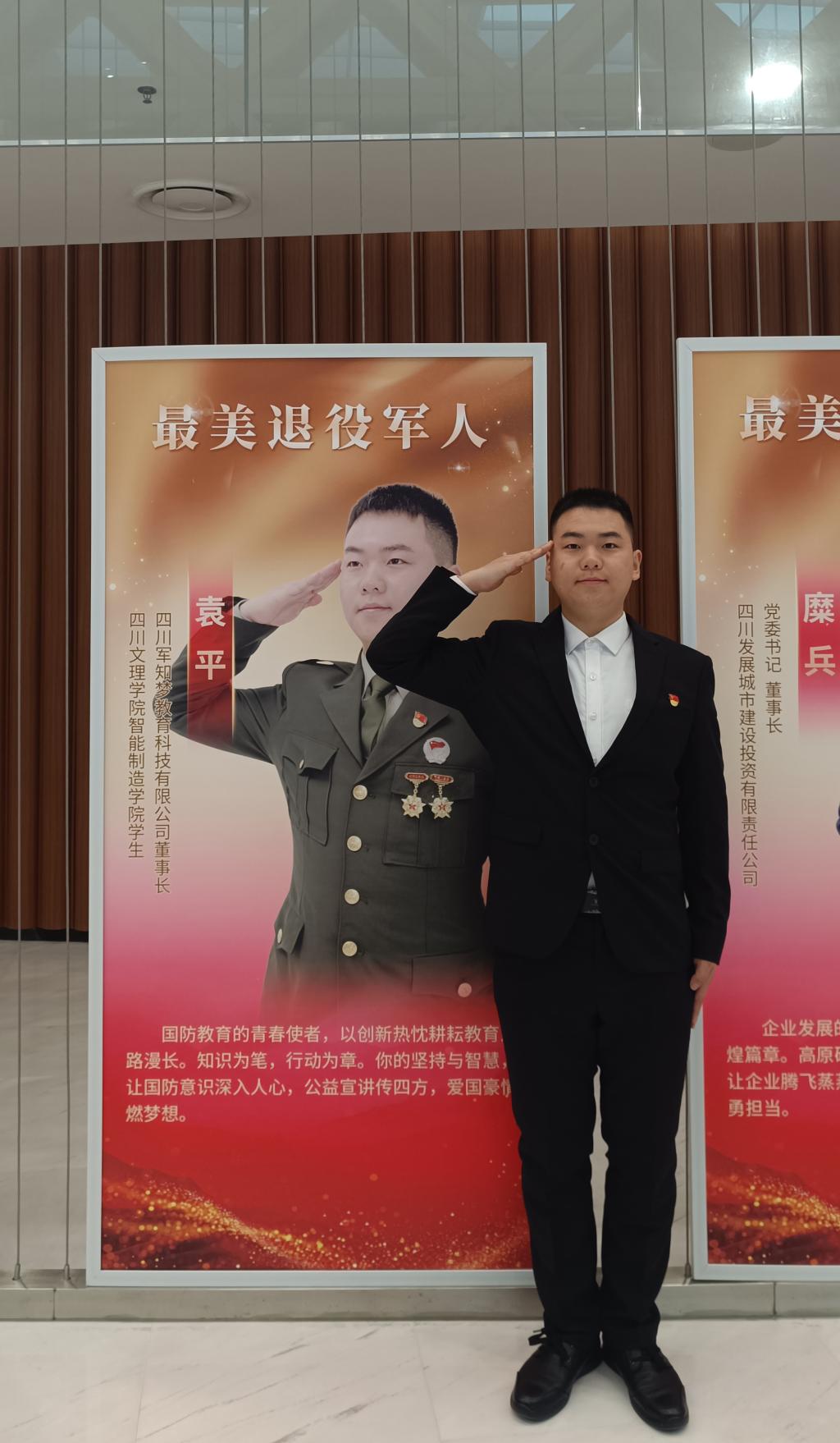 近日,由省委宣传部、退役军人事务厅、省军区政治工作局、省双拥工作领导小组办公室联合主办的四川省“情系国防”先进典型发布仪式在成都举行,现场发布了2024年度20名四川省“最美退役军人”和10名四川省“最美拥军人物”。我校智能制造学院2021级退役复学学生袁平获评四川省“最美退役军人”。