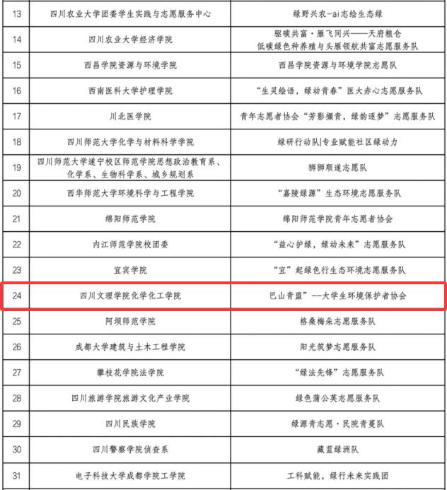 近日,四川省生态环境厅联合共青团四川省委开展了“美丽中国,志愿有我——绿动青春四川高校生态环境志愿行动”。活动得到了各高校志愿服务团队的广泛关注和积极参与,最终经主办方研究确定了44所高校的50支志愿服务队伍,我校大学生环境保护者协会成功入选。