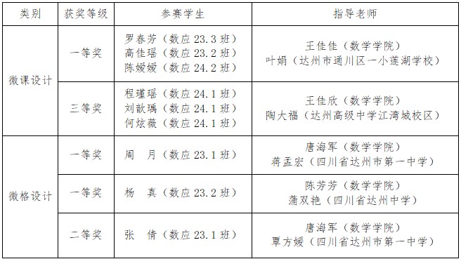 5月9日—12日,以“AI赋能数学微格教学”为主题的2025年数学微格教学论坛暨第十四届全国高校数学师范生教学技能展示活动在广西师范大学成功举办。本次国家级赛事由中国教育技术协会微格教学专业委员会主办,吸引了全国96所院校1738名选手同台竞技。经过激烈角逐,四川文理学院数学学院以卓越表现斩获微课设计一等奖1项,三等奖1项;微格设计一等奖2项,二等奖1项;数学学院荣获“优秀组织单位”称号。