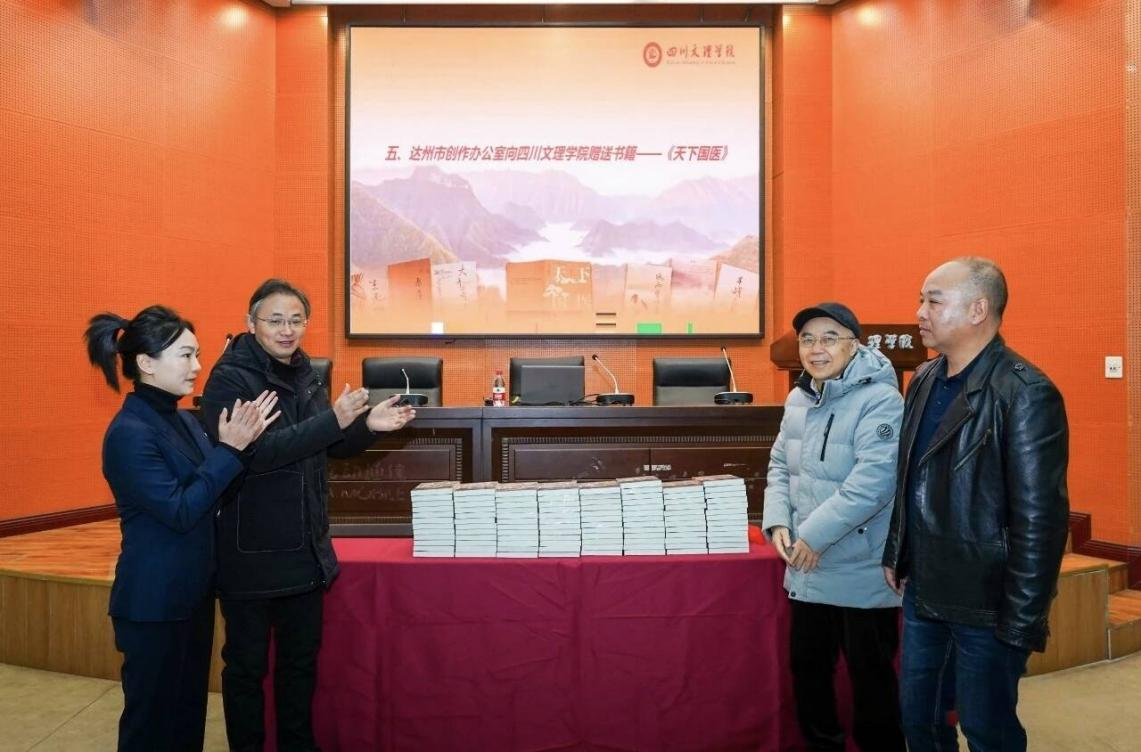 12月13日,巴山作家李明春的长篇小说《天下国医》创作分享会在我校莲湖西区举行,《天下国医》由四川文艺出版社出版,讲述了川东中医世家第三十代传人龚天缘执业中医的经历,入选2022年度四川省作家协会和2023年度中国作家协会重点扶持作品。达州市文化体育和旅游局、达州市创作办公室、达州市中医药管理局、达州市文学艺术院、达州市作家协会、达州市科普作家协会、达州市电影家协会相关负责人与我校师生一起参加了活动。