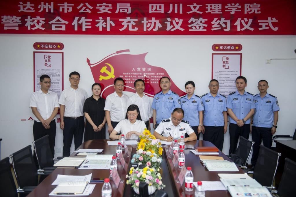 6月27日,我校与达州市公安局警校合作补充协议签约仪式在博文楼举行,达州市公安局副局长李鸿杰参加签约仪式,副校长邓杰出席签约仪式并讲话。
